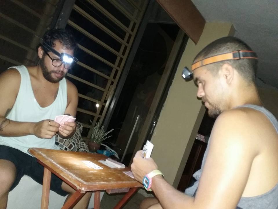 En la oscuridad, jugamos cartas, hablamos, oímos música y hablamos con amigos que nos visitan para acompañarse en la oscuridad.
